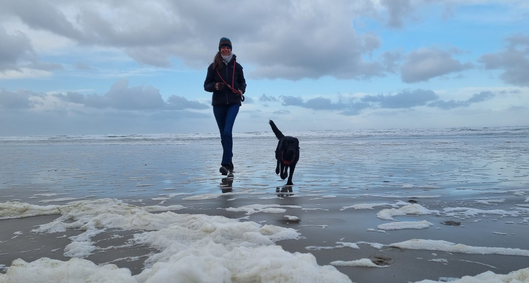 Het heeft gevroren gisteravond en alles ziet er prachtig uit. Door de duinen blijkt best wel een uitdaging te zijn doordat er op sommige stukken heel veel water ligt en je dus niet altijd maar je route kan blijven volgen. Uiteindelijk komen we langs de kust bij het groene Strand uit in het centrum.