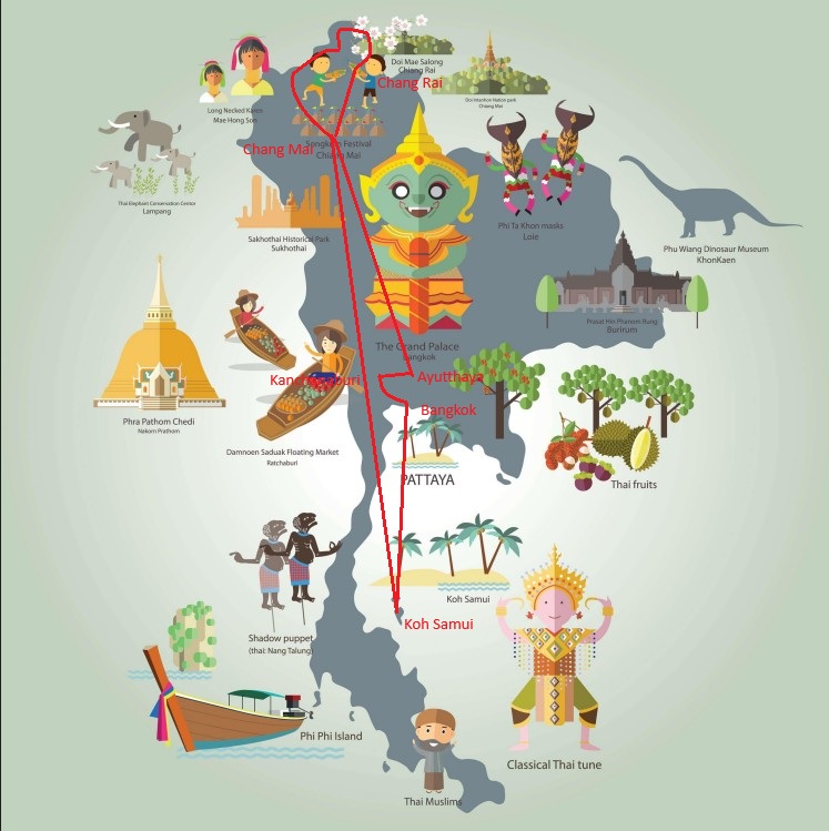 De winter is pas net begonnen maar wij hebben nu alweer behoefte aan de zon. Helaas zijn het aantal vakantie dagen gelimiteerd en zoeken wij dus een land op waar wij binnen twee weken van natuur, cultuur en zonnestralen kunnen genieten. Moet in Thailand te doen zijn lijkt me zo…