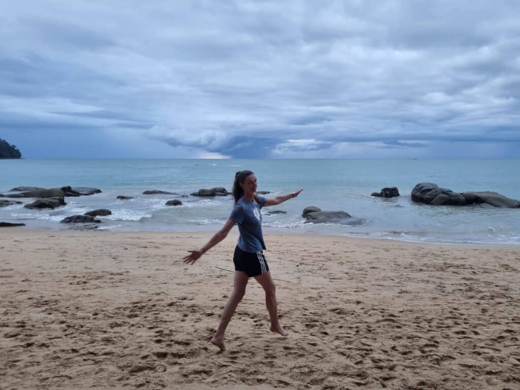 Douchen en naar ontbijt waar echt alles staat. We doen het lekker rustig aan en verkassen dan richting strand. Daar hebben we een typische stranddag: zwemmen, zonnen, beetje ballen en als het wat bewolkt is, gaan we even met de fiets weg. Die mogen we 2uur gratis lenen en het zijn goede fietsen. Helaas hebben we maar 15 minuten, in rustig tempo, nodig om de hele omgeving door te fietsen. Had wel een stukje verder willen fietsen maar om nou over de hoofdweg te gaan fietsen vinden wij nou ook niet zo’n goed idee. Koffie dan maar en weer terug naar het strand waar we eerst even iets eten want ik heb me opgegeven voor een gratis Muey Thai les. Beetje onhandig om om 16:00 nog iets te eten maar leek me niet handig om zonder iets in de maag zo’n les mee te doen.