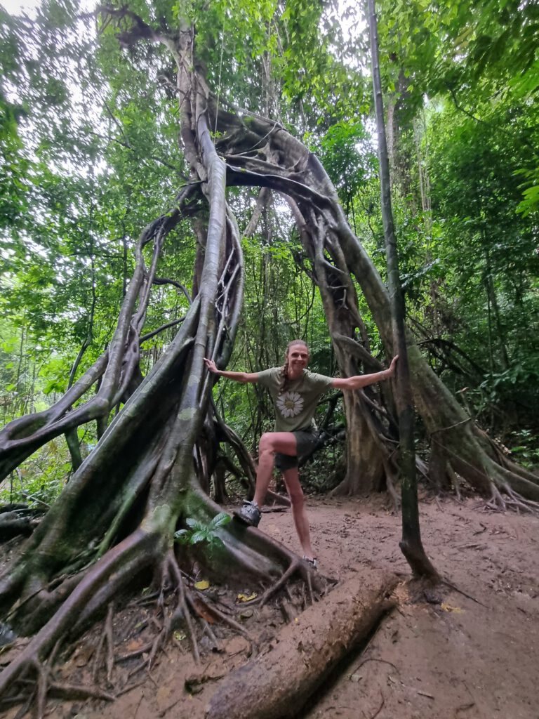 Binnen 15min staat gids en dobberen we in een uur de sok af. Best grappig en ook best fris. We zien behoorlijk wat apen en zelfs twee slangen in een boom. Verassend.