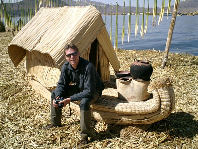Vanochtend werden wij om 6:45 voor onze dagexcursie over het Titicacameer opgehaald en netjes bij de haven van Puno afgezet. In totaal zijn wij een groep van ongeveer 20 en hebben wij een zeer nette boot. Bij het verlaten van de haven moeten wij allemaal binnen zitten maar na het inleidende gesprekje waarin verteld wordt dat de uitspraak Titicaacaa is en niet Titikaka, het betekent immers Puma de la Piedra en kaka van Titi, zitten wij metee op het dak in het zonnetje. Na ongeveer 30 minuten komen wij aan bij de Uros eilanden. Dit zijn eilanden die compleet van riet gemaakt zijn en waarop je de deining van het water voelt als je erover heen loopt. Echt bijzonder. De emensen op de Uroseilanden wonen hier echt maar komen af en toe wel in Puno om belangrijke dingen te halen.Verder leven ze van vis en riet dat wij ook even mogen proeven. Het smaakt naar niets maar kennelijk blijkt het goed tegen reuma te zijn en krijg je er mooie witte tanden van. Even dooreten dus, baat het niet, schaadt het niet. Na een verhaaltje mogen wij even rondlopen en maken wij een overtocht naar het hoofd drijvende eiland per rietenboot. Heel apart en